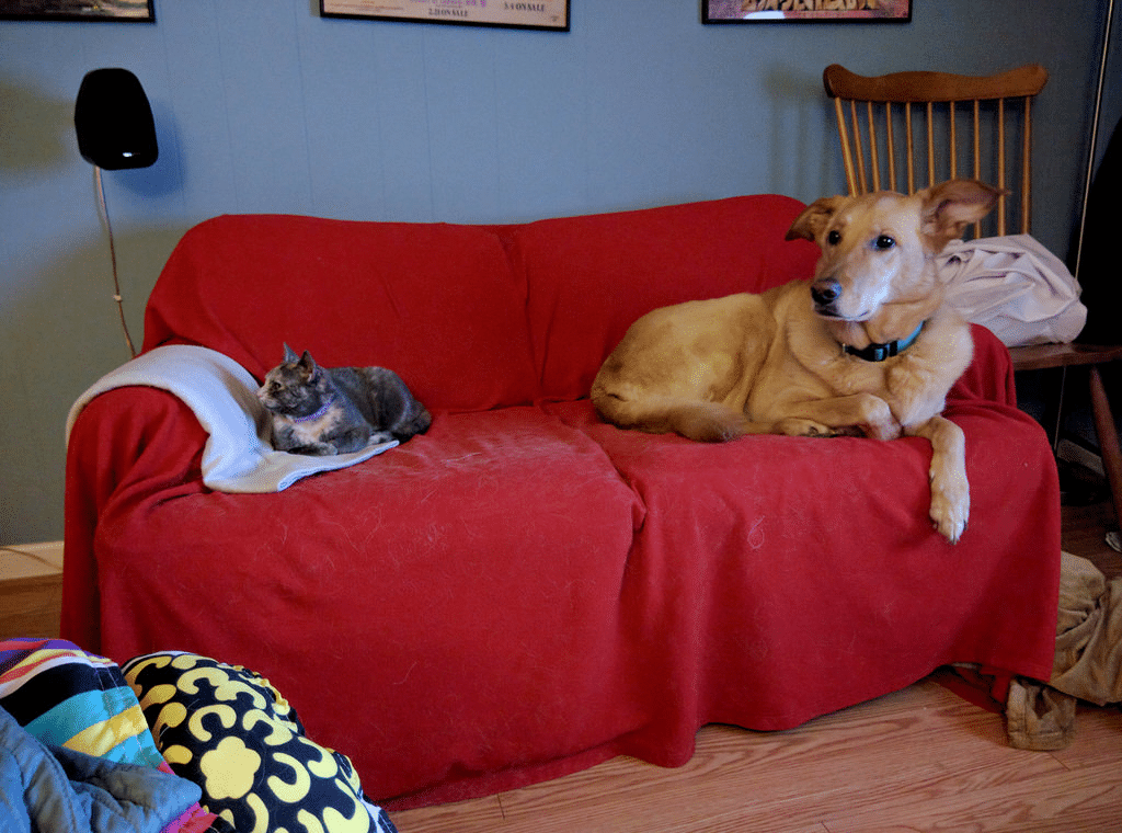 Pes a kočka se mají rádi. The dog and cat like each other. |