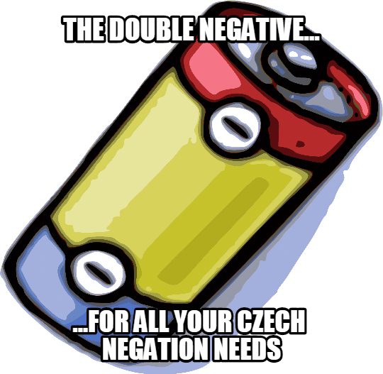 You’ve probably learned that two negatives make a positive and have used that as a way to talk about why sentences like I don’t need no money aren’t technically grammatical in English. However, in Czech it is absolutely the rule, and two negatives definitely do not make a positive: