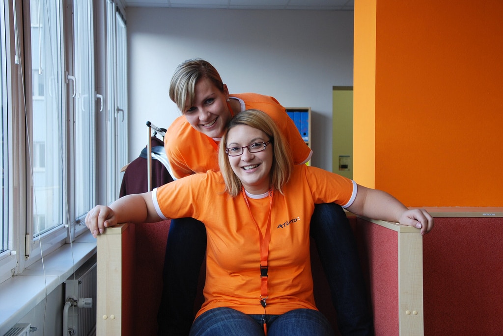 Obě moje kamarádky pracujou tady. both my friends work here. |