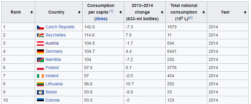 Related to the verb pít, pivo is literally the ‘thing that you drink’. Czechs drink more beer per capita than any other country in the world (see chart).
