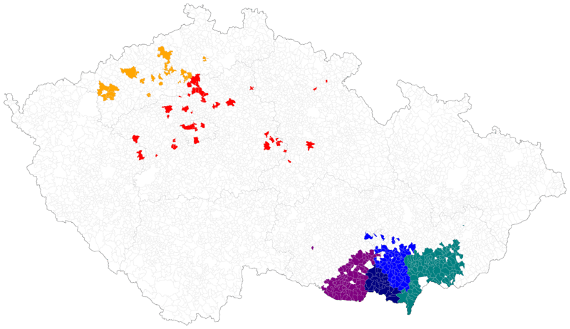Wine is produced heavily in certain regions of the Czech Republic, especially southern Moravia. The image on the left above is from vineyards located within the national park Sobeš. The image on the right shows precisely where grapes are cultivated and wine production is heaviest in the Czech Republic. |