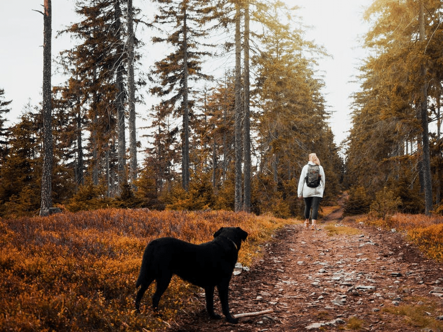 Lenka ráda chodí na procházky se psem. |