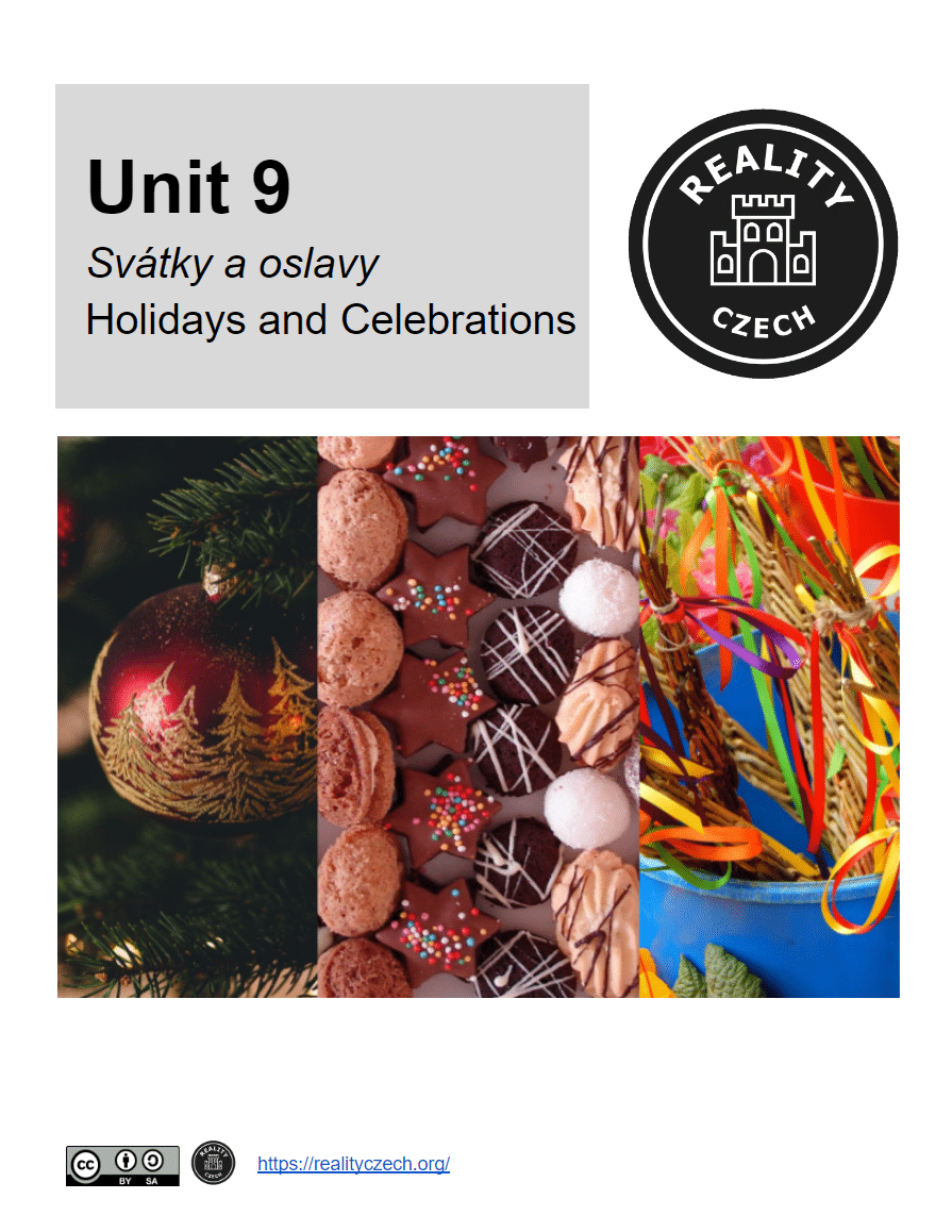 In this unit you will be introduced to Czech holidays and other common celebrations. You will learn how to talk about Czech holiday traditions in connection with their most common holidays such as Christmas, Easter, name days, etc. You will also learn how to talk about your own family’s traditions as well as more general traditions associated with where you live. You will learn vocabulary to talk about gift giving, including the words for common types of gifts, as well as the grammar and vocabulary needed to give gifts to others.