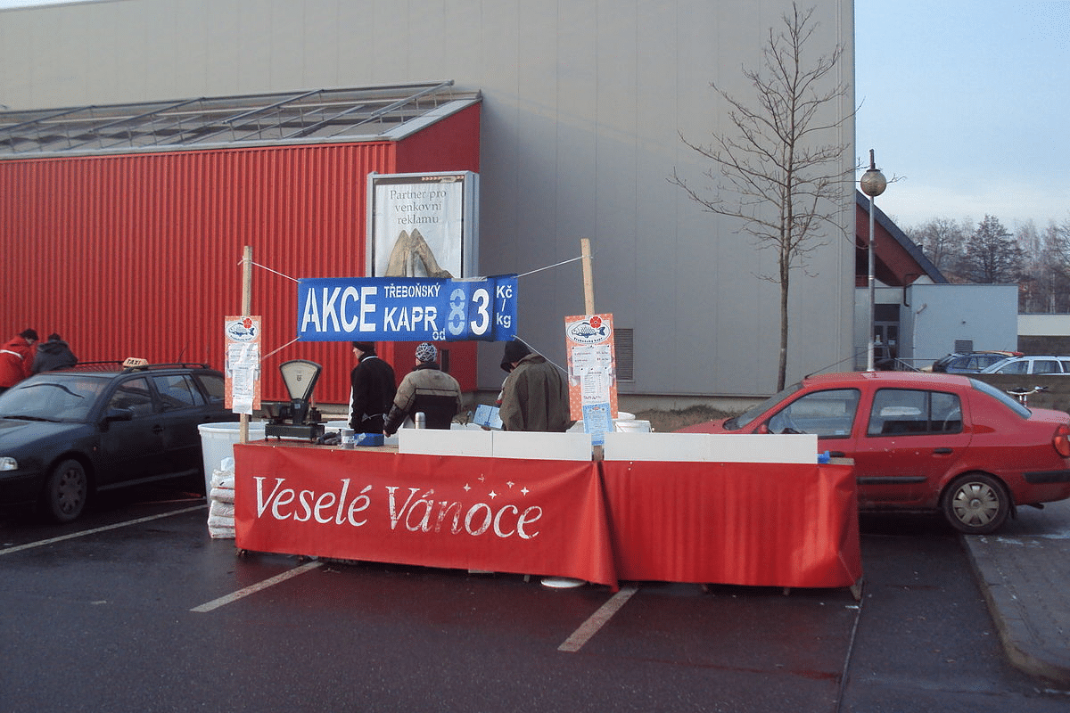 Živí kapři se prodávají na ulicích a v obchodech ve velkých kádích. Lidé si kapry často odnášejí domů a chovají je ve vaně až do 24. prosince, aby bylo maso hodně čerstvé. Odborníci to však nedoporučují. Ryba prý zbytečně trpí v chlorované vodě a někdy může umřít. Je prý lepší nechat kapra zabít přímo na stánku. |